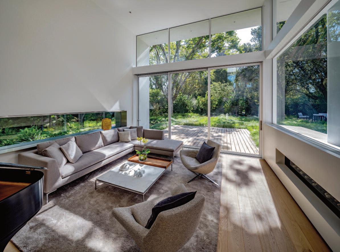 H i g h c e i l i n g s a n d a l o t o f n a t u r a l l i g h t a re s o m e o f t h e c h a r a c t e r i s t i c fe a t u re s o f t h i s p ro j e c t i n s p i re d by e a r ly C a l i fo r n i a m o d e r n m a s t e r s W i t h c a b i n e t s by A n t o n i o L u p i D e s i g n a n d f u r n i t u re by B & B I t a l i a , C a s s i n a a n d Po l i fo r m . C a s ewo r k i s by Po rro a n d R i m a d e s i o a n d t h e r u g i s by M i n o t t i . A l l ap p l i a n c e s a re by G ag ge n a u .