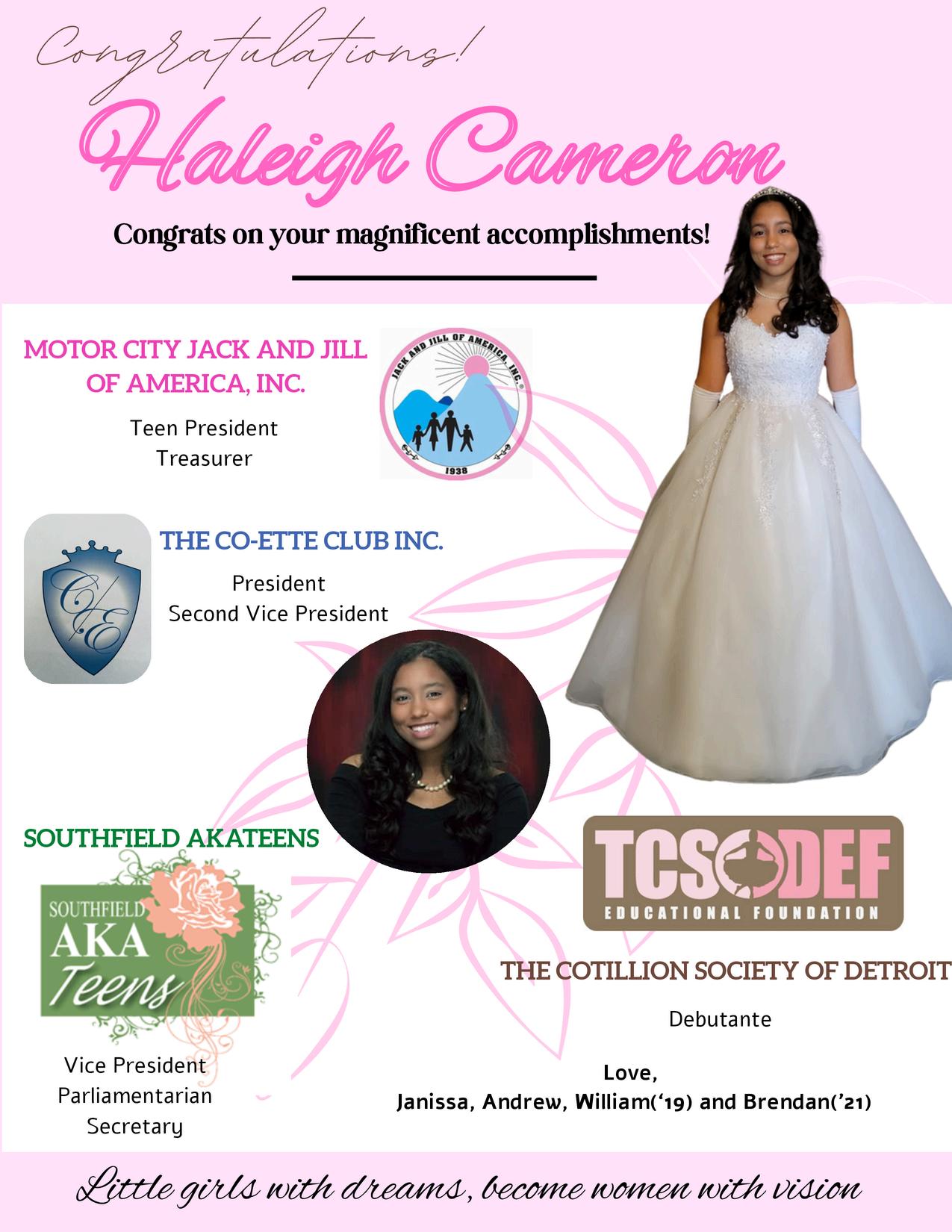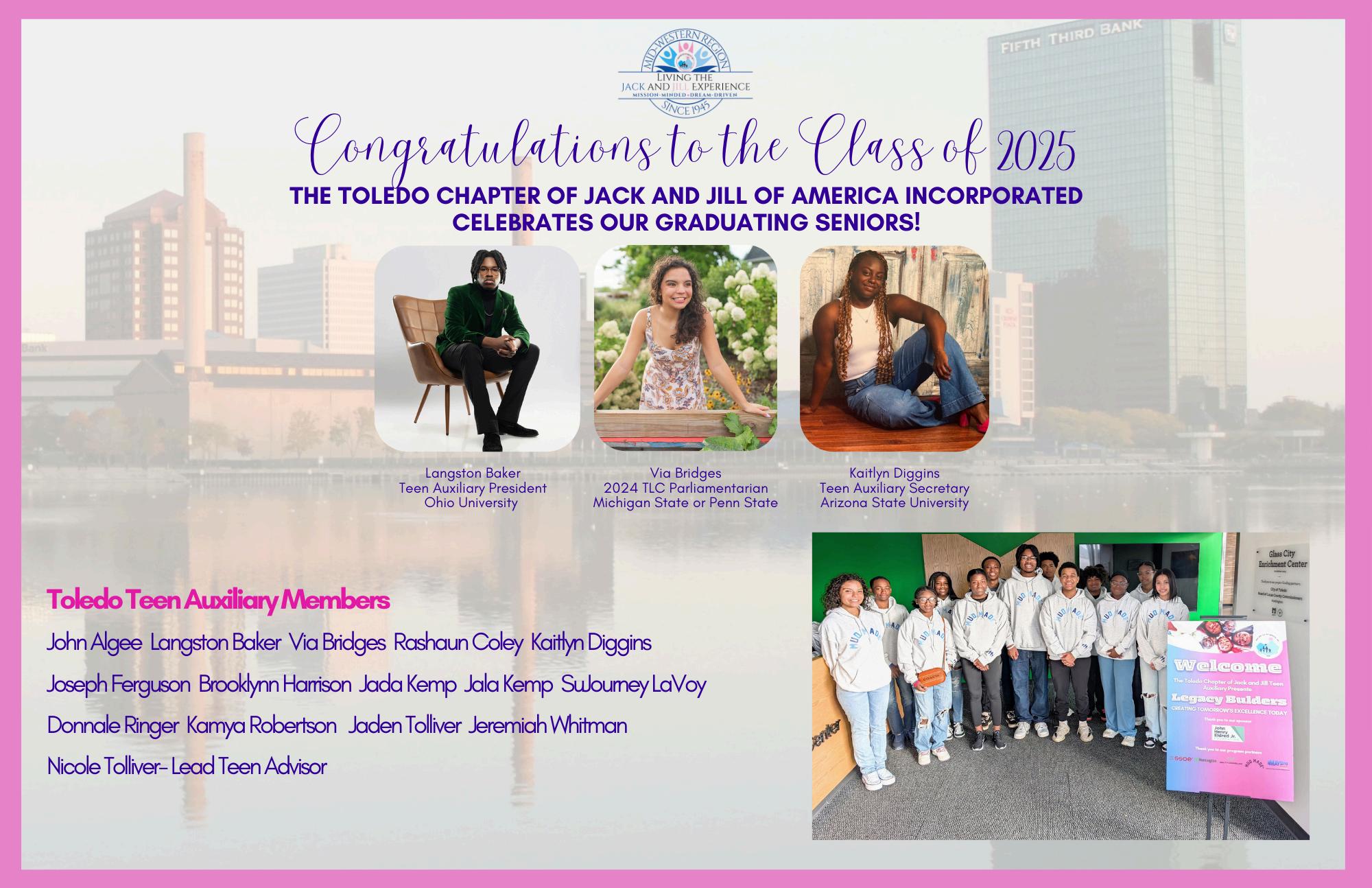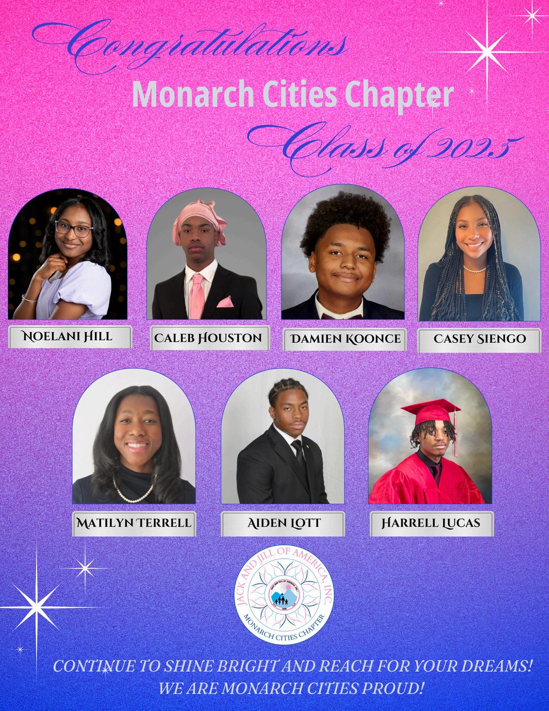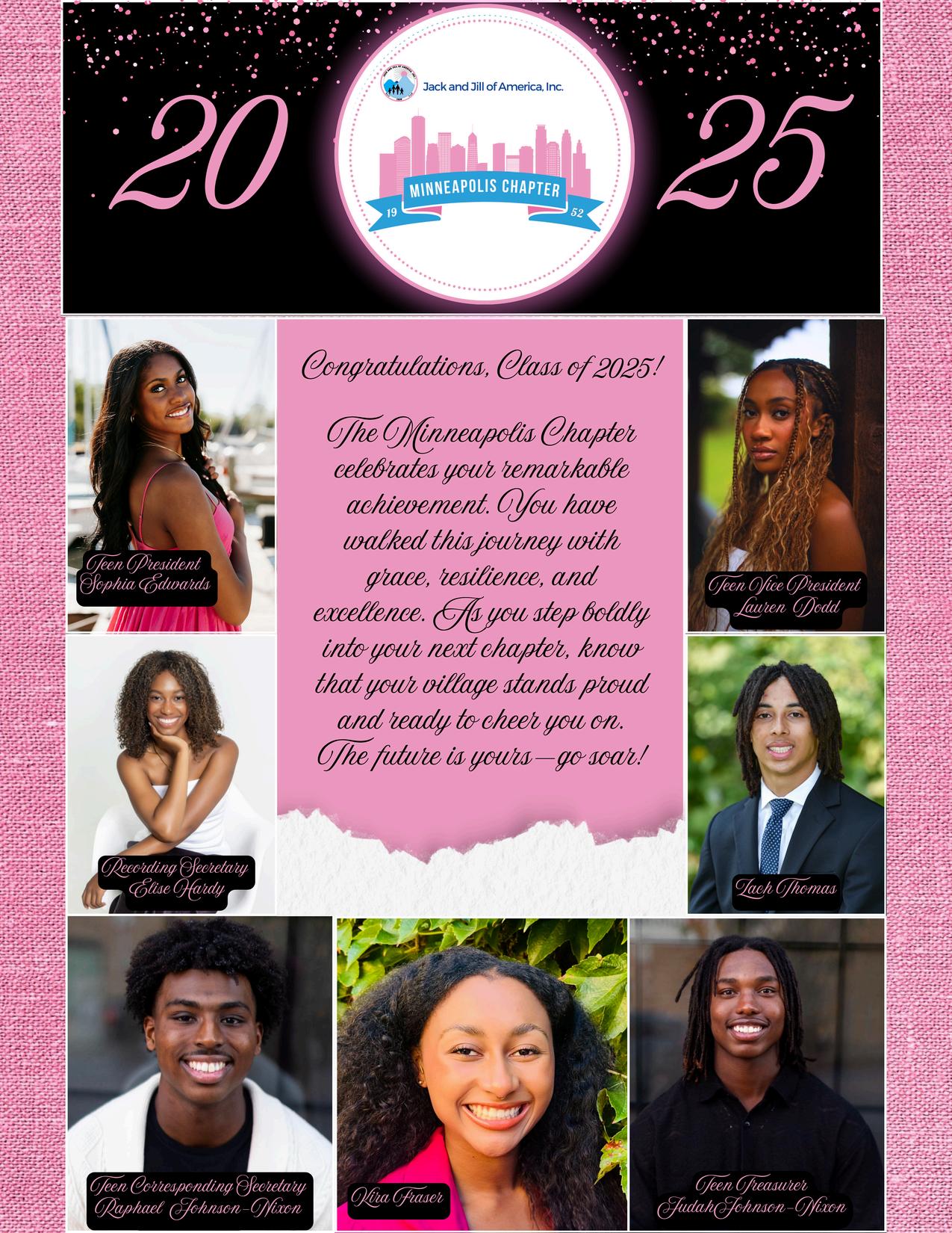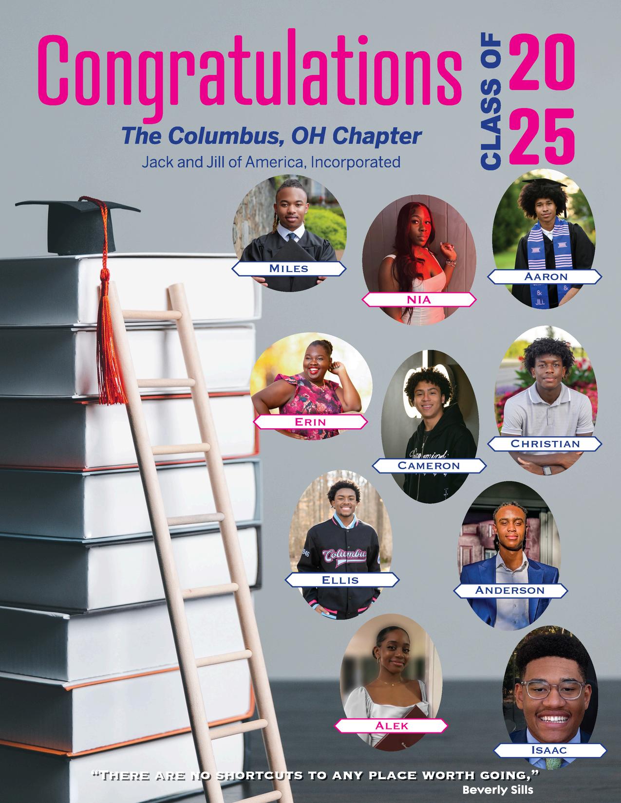 To the graduating class of 2025, we are excited about your next chapter Your experiences in Jack and Jill have equipped you to make good decisions, embrace change, and lead by example. We pray God continues to bless and protect each one of you. The future will present you with challenges and opportunities to excel. Continue to grow, learn, question, and be of service to others.