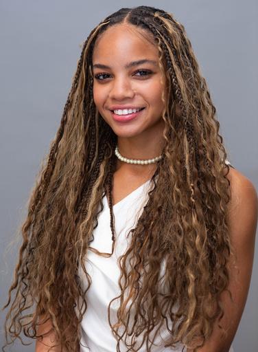 Kayla Noelle Jones is a senior at George Westinghouse College Prep High School in Chicago, Illinois, and the daughter of Allen Jones and Nancy Marseille Jones. She has been a member of the Western Cook County Chapter for 16 years and currently serves as the Teen Vice President. Previously, she held the position of Secretary and now chairs the chapter's step team. She has served as the chair of courtesy and protocol, programming, style, budget, and finance committees. Kayla is an honor roll student and serves as the historian for the Girls with a Vision Club. Additionally, she has been a member of the cheerleading team for two years and served as co-captain this year. For 14 years, Kayla has been a dancer with Stairway of the Stars, specializing in tap, jazz, and ballet. She is also the immediate past Companion Advisor (President) of the Rosebud Grand Circle and has previously served as Associate Companion Advisor, Secretary, and Treasurer. Kayla has been dedicated to community service, volunteering annually at Olive Branch Mission, Brainerd Senior Center, Vital Bridges, and Ronald McDonald House. This fall, Kayla will major in nursing and plans to pursue graduate studies in obstetrics and gynecological medicine.