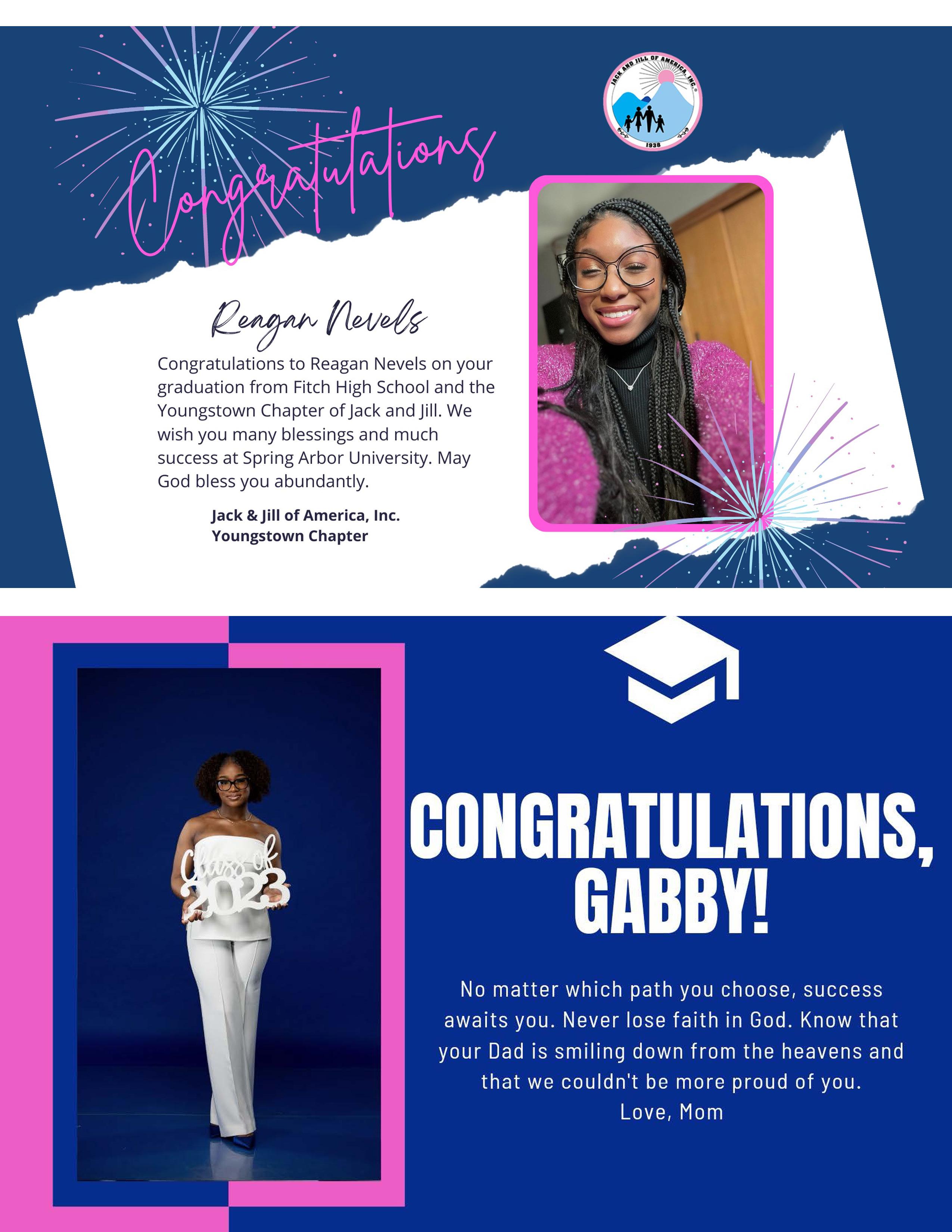 Reagan Nevels is a senior at Fitch High School in Austintown Ohio and is the daughter of Emmitt and Kacie Nevels. She has been a member of the Youngstown Chapter for nine years. She has served countless community service hours within soup kitchens, dance volunteer work in charter schools, toy/food drives, and more. She has also traveled the country inspiring people of all ages, that no matter how young or old they are, they still have the opportunity to make their dreams their reality. She has shared this message on stages with people such as Bishop T.D. Jakes, Lisa Nichols, and Iyanla Vanzant. Reagan is an award winning, two time published author. She conveys the importance of living your life to your fullest potential regardless of your present circumstances in her books “Vision Collision” and “Why Wait? Your Time is Now!” She has decided to attend Spring Arbor University in Michigan where she will receive her bachelors and masters degrees in business administration and real estate. Reagan has a will to make all of her dreams her reality, show people how they can do it too, and trust in the will of God to help her do so.