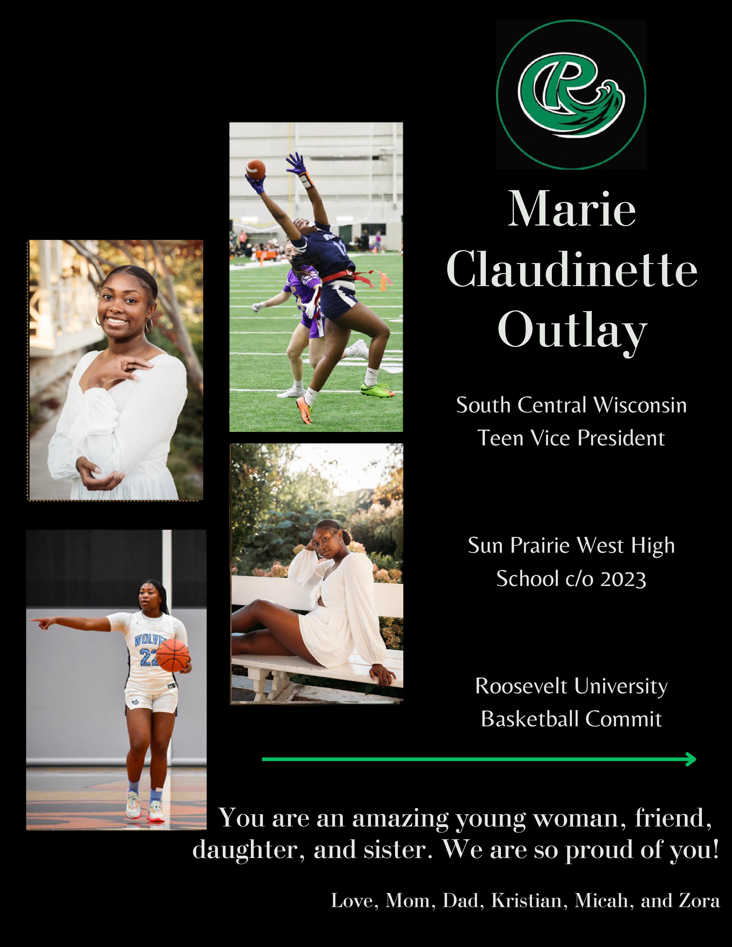 Madison Marie Maynard is a senior at Gilmour Academy in Gates Mills, Ohio and is the daughter of Terry and Charlene Maynard. Madison is an AP student and a member of the National Honor Society and Head of School recipient. She is an active student and leader at school. She is a member of Honor Counsel, Civic Engagement Club, Black Student Association, Student Ambassador, Lancers for Liberty, and is the cocreator of the Feminism Club. She has played Varsity A tennis since freshman year.