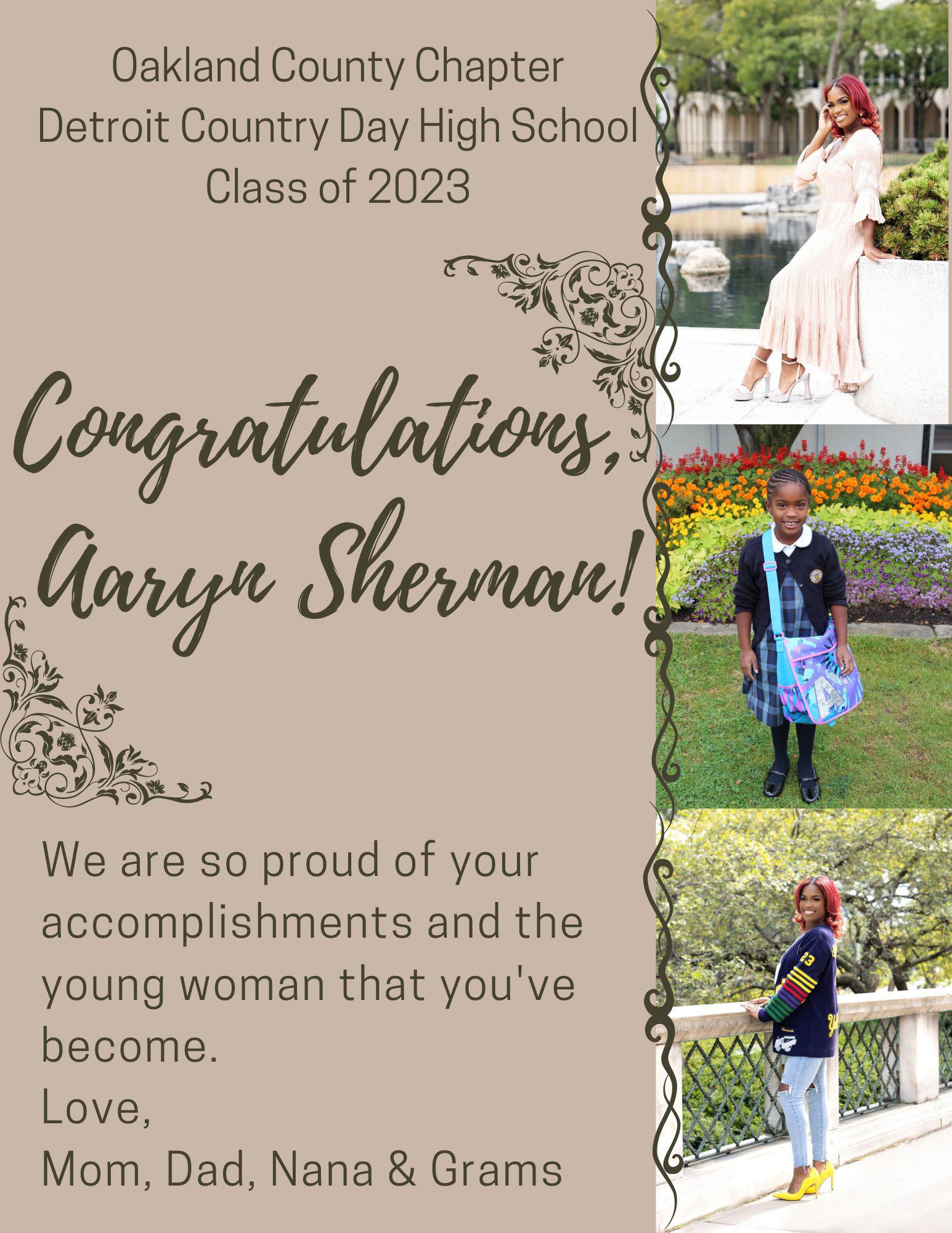 Daelynn Arschel Haywood is a senior at Spire Academy in Geneva, Ohio, and is the daughter of Morris and Sonja Haywood. She has been a member of the Cleveland Chapter for fifteen years. Daelynn is a scholar and athlete that strives for excellence in all aspects of her life. She has been a nationally ranked swimmer since age six. She has been a talented writer winning awards since grade school. Daelynn plans to swim in college, at the University of North Carolina Asheville, and major in English.