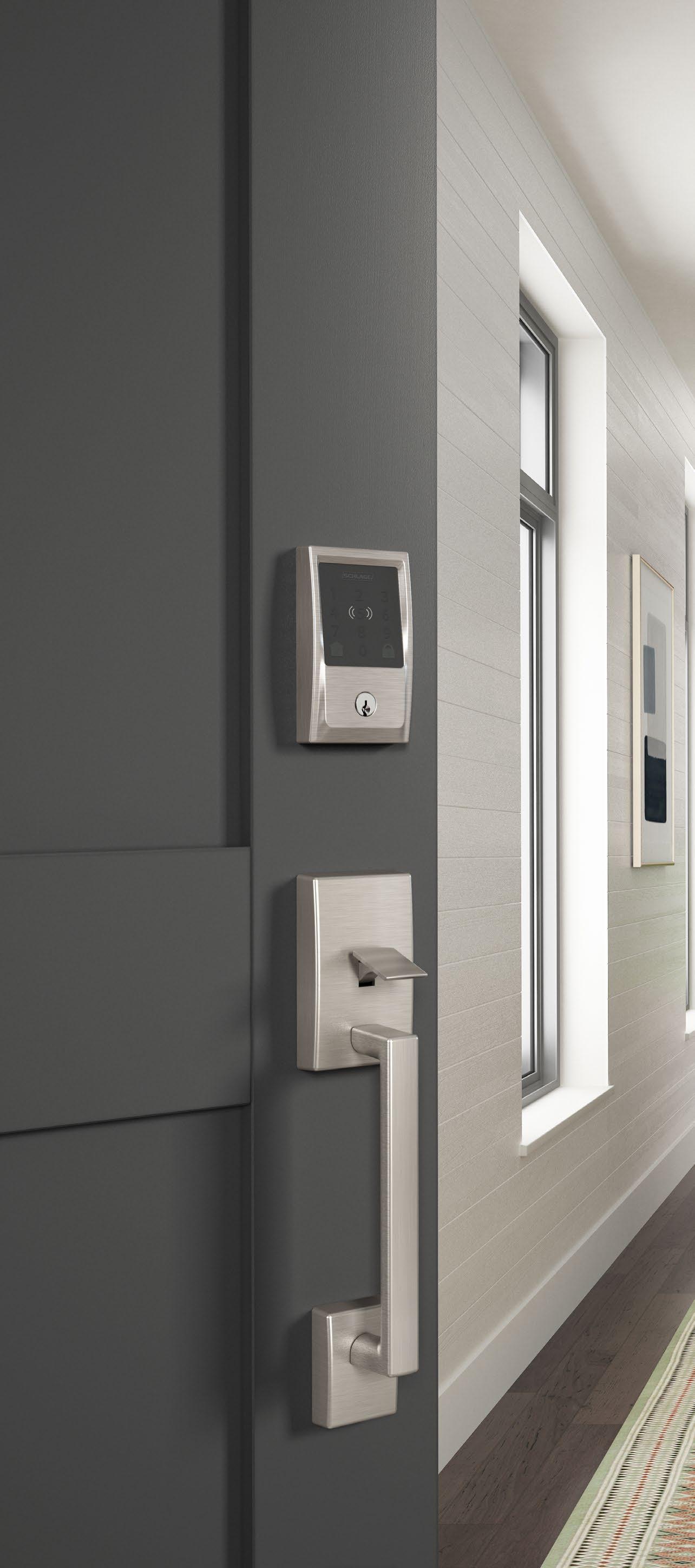 Schlage Encode Plus also works with Amazon Alexa and Google Assistant for optional voiceenabled access. It is securely encrypted with a built-in alarm and fingerprint-resistant touch screen for code security.