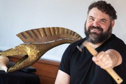 This is the case of the most spectacular of his creations, the karnyx. This tall metal horn, crowned by the head of a fierce dragon, is an instrument from the Celtic Iron Age. It