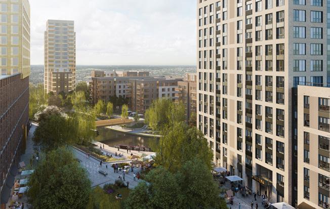 The scheme comprises 1,325 new homes including homes for rent and sale, 35% of which will be affordable. On top of this, the scheme includes mix of co-living, coworking space, studio space and purpose-built workspaces.