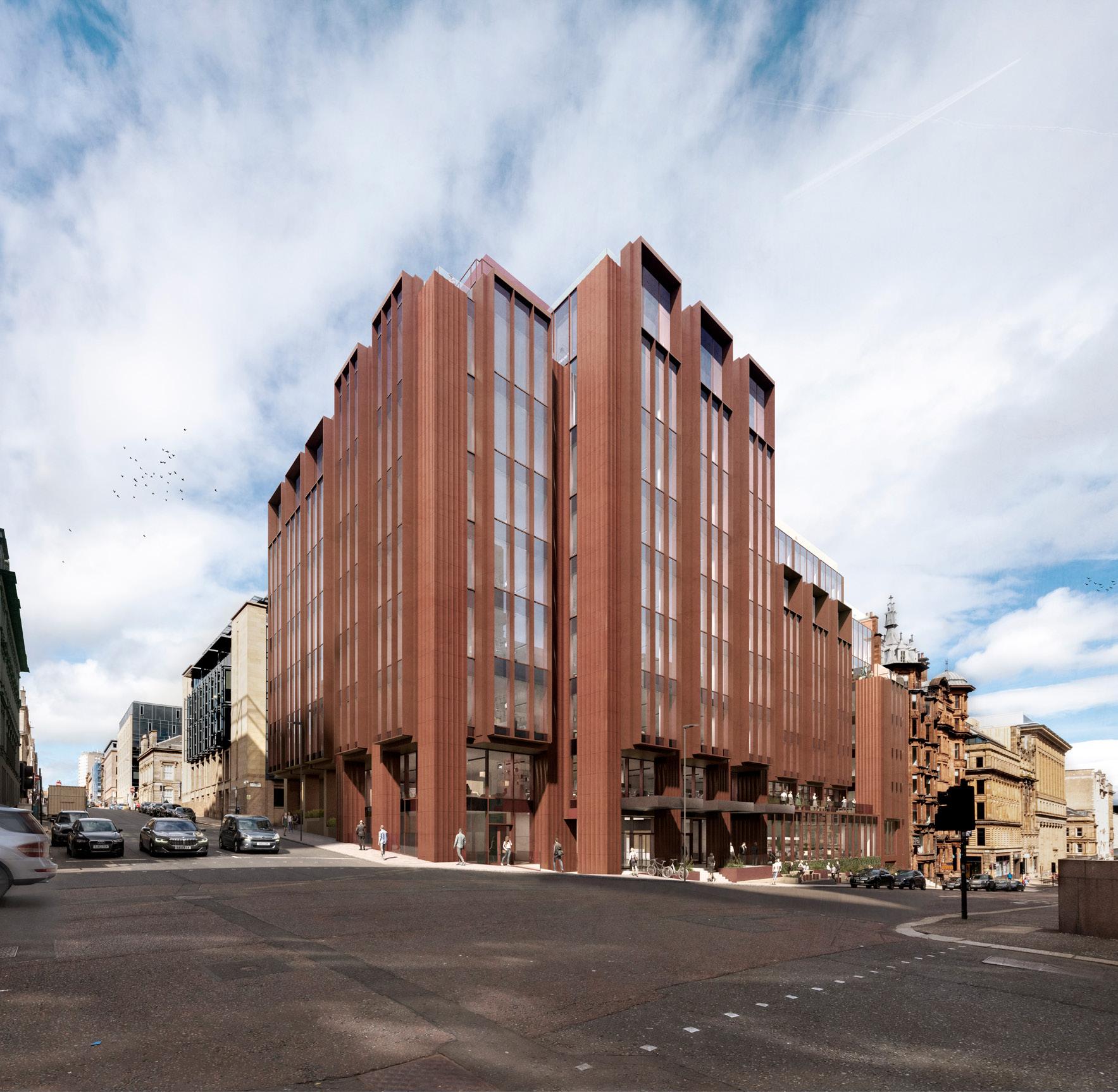 Consented deep retrofit of a 1970s office building within the Glasgow Central Conservation Area, with the addition of new floors at roof level, with the ambition to develop the ‘greenest office building in Glasgow’.