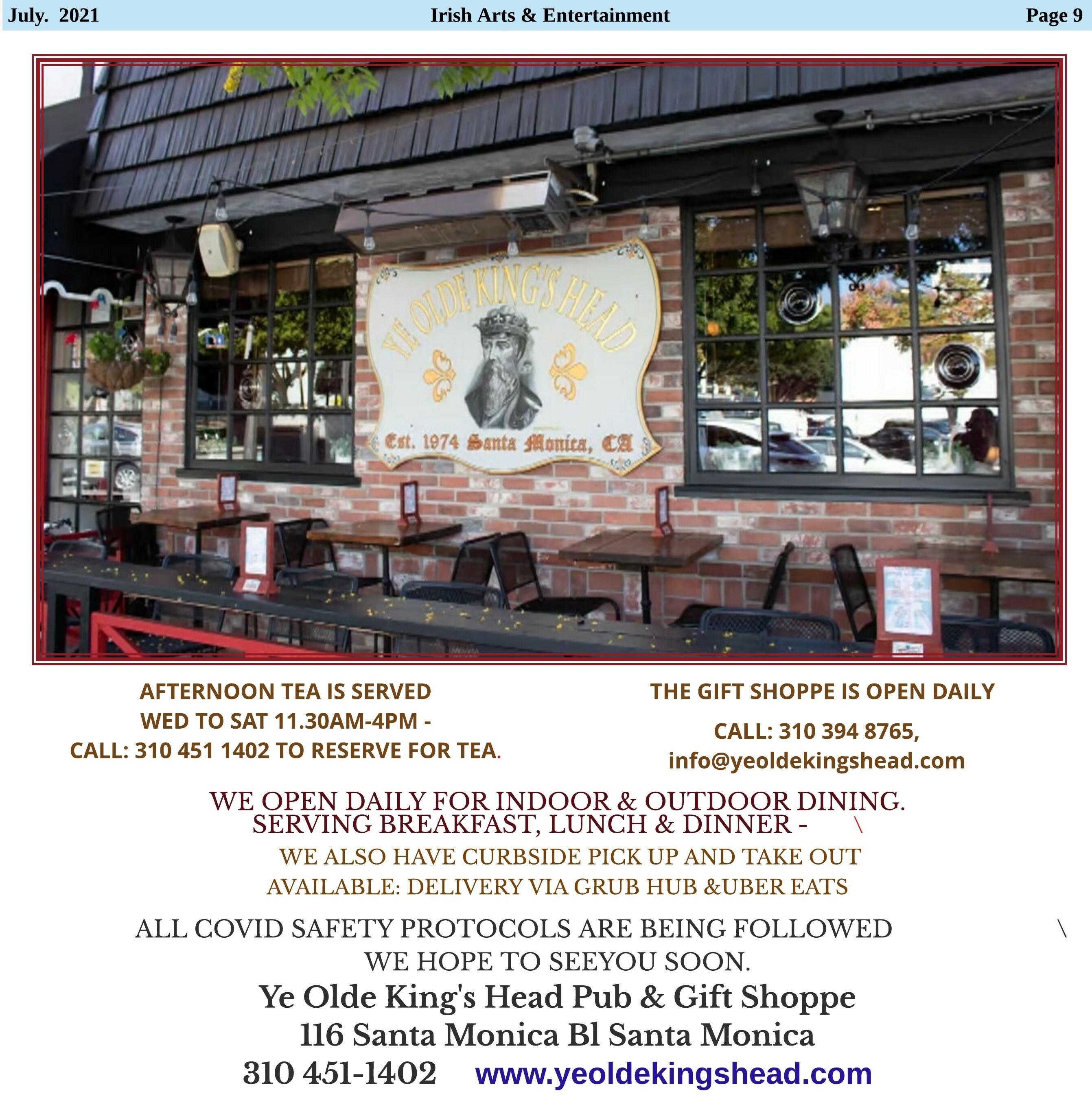 The Mont hly Calendar for t he Auld Dubliner in Long Beach is on Page 5. They are doing m ore t o keep Irish Music and Dance in t he forefront t han any pub in SoCal so please support t hem !