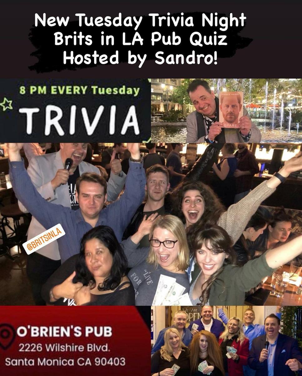 WED: 8PM t o 10PM Form a t eam or t ry t o form one at t he pub Play for cash prizes of $150. No ent ry fee 2226 Wilshire Sant a Monica, CA w w w.obriensla.com