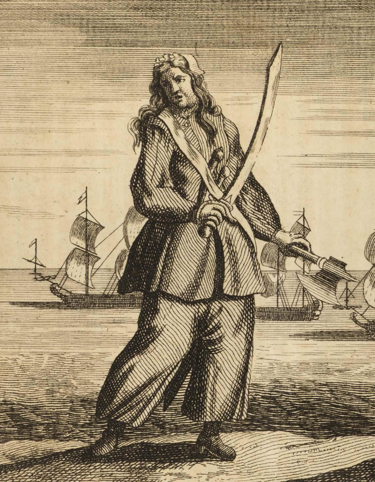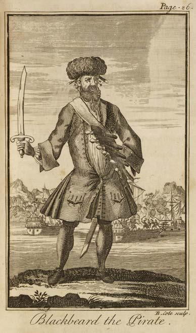 Biographies of some of the most famous pirates, including Blackbeard, Calico Jack, and Bartholomew Roberts, are featured, as well as those of two female pirates, Anne Bonny and Mary Read. The three plates depict Blackbeard, Ann Bonny & Mary Read, and Captain Bartholomew Read with two ships, the Royal Fortune and Ranger.