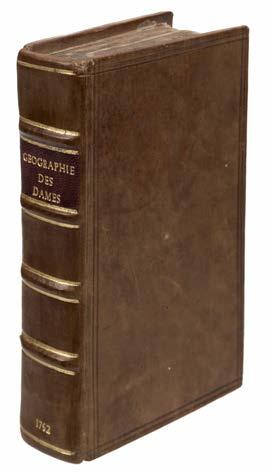 4 Denis (Louis). Géographie des Dames ou Almanach Géographique Historique..., published Paris: Jacques J. Pasquier & Louis Denis, 1762, frontispiece of a folding map of the environs of Paris, calligraphic title page, introduction and preface with halftitle to the verso, engraved plate of an armillary sphere, 14 engraved plates of globes with a table printed to the verso of the last map, double-page map of geographical and cartographic terminology, two hemispheral maps, 11 double-page engraved maps, key map and 23 double-page maps of France, all with contemporary wash & outline colouring, indices bound at rear, occasional later manuscript annotations to margins and verso of maps, later marbled endpapers, modern calf gilt with contrasting morocco label to the spinem, 32mo, binding size 105 x 70 mm There is no record of this book on the JISC/Copac catalogue and it is not recorded on Rare Book Hub.