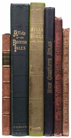 1 Atlases. A Collection of Six Atlases, 19th & early 20th century, six atlases all with colour lithographic maps, with examples by or after W. & A. K. Johnston, G. W. Bacon, William Collins, Bradbury, Agnew & Co. and William Blackwood and Sons, various sizes and condition