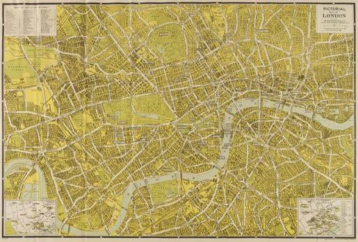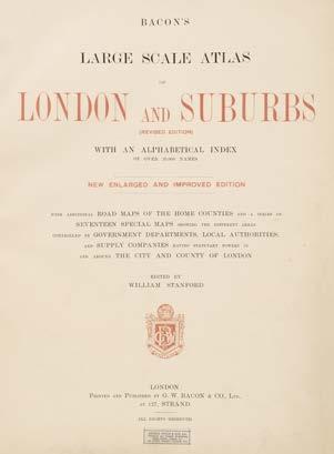21 Bacon (G. W. publisher). Bacon’s Large Scale Atlas of London and Suburbs (Revised Edition) with an Alphabetical Index, circa 1910, title page and contents list, 26 double-page and folding social, county, geographic and industrial maps and a 34-sheet map of Greater London, map of central London torn with loss to the lower left corner, first page of the index list and the map of the London Postal Districts with long repaired closed tear, very slight spotting, endpapers and pastedowns with some staining, publisher’s half morocco gilt, stained, frayed and worn, folio
