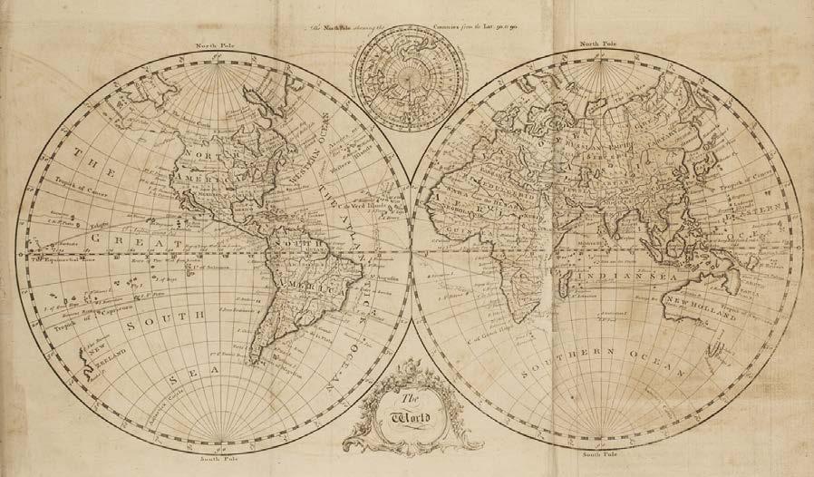 20 Watson (Frederic). A New and Complete Geographical Dictionary. Containing a full and accurate description of the several parts of the Known World, London: Printed for the authors, and sold by G. Kearsly, 1773, engraved frontispiece, 18 engraved maps (including double-hemisphere folding map of the world), 31 engraved plates, 18th-century brown ink ownership inscription of Thomas Pearsons to head of front free endpaper, hinges repaired with later paper, closed tear to frontispiece (affecting image, repaired with tape to verso), a few small closed tears to margins, spotting, contemporary calf, heavily worn, joints cracked, folio (1)