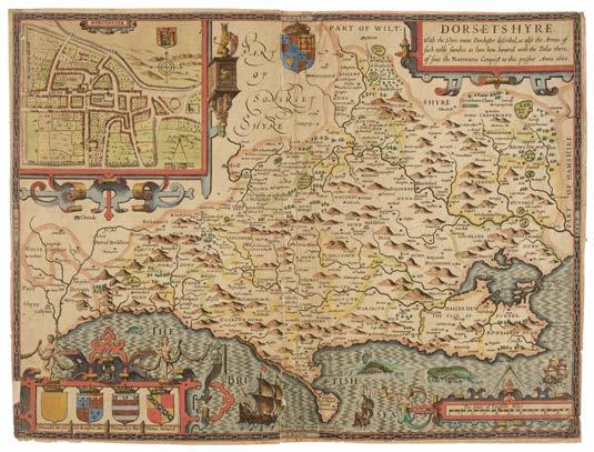 27 Camden (William). Camden’s Britannia, Newly Translated into English: with large Additions and Improvements, Publish’d by Edmund Gibson, of Queens-College in Oxford..., London: F. Collins, for A. Swalle, 1695, small tear to title with some loss to initial letter ‘C’ and paper repair to lower outer corner not affecting text, 50 uncoloured engraved double-page maps by Robert Morden, 8 engraved plates of coins, woodcut illustrations and one full-page engraved illustration by Kip, some with printer’s creases and/or areas of light toning, map of Kent trimmed to plate mark but with no loss to printed area, maps of Herefordshire and Norfolk with short closed tears, map of Warwickshire with repaired lower right outer corner with minor loss to printed area, some spotting and marginal damp staining, mostly at front and rear, book label adhesion remains to front pastedown, contemporary calf, gilt-ruled morocco reback with spine label, scuffed area at foot of spine, folio Chubb CXIII.