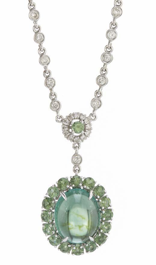 58. An emerald and pear-shape diamond pendant, suspending a cultured pearl drop, pearl measures approximately 16mm, principal emerald estimated weight 1.70ct, estimated total diamond weight 0.40ct, H-I colour, SI clarity, length 4.4cm, 12.2g