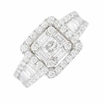 48. An 18ct gold and platinum octagonal-shape sapphire and vari-cut diamond cluster ring, sapphire estimated weight 1.40ct, estimated total diamond weight 0.85ct, G-H colour, VS2-SI1 clarity, ring size K, 3.7g £400 - £600