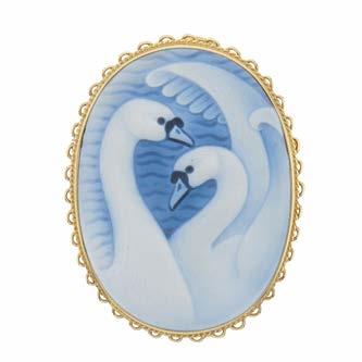 25. Meyle & Mayer, an Art Nouveau silver polychrome enamel swan brooch, with colourless paste highlights and green paste eye detail, maker’s marks for Meyle & Meyer, mount stamped Sterling Depose, length 3cm, 7.4g