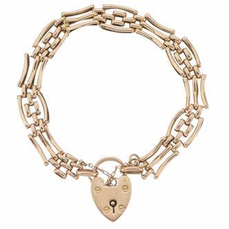 21 An early 20th century 9ct gold gate bracelet, with heart-shape padlock clasp, stamped 9c, length 19cm, 12g £300 - £500