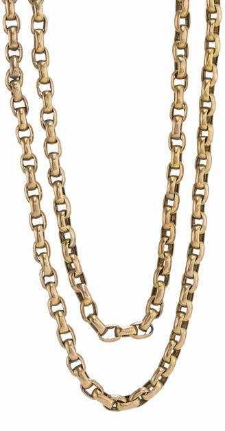 5 An early 20th century 9ct gold belcher-link longuard chain necklace, length 83cm, 27.8g £200 - £300