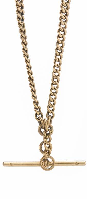 32. A 9ct gold curb-link Albert chain, with T-bar and lobster clasp terminals, stamped 9 375, length 47.5cm, 27.2g £600 - £800