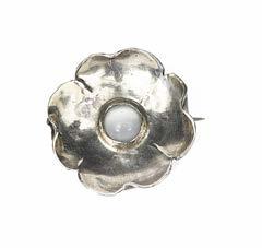 A silver and moonstone flower brooch possibly Guild of Handicraft, modelled as simple flowerhead, set with moonstone cabochon to the centre, unsigned, 2.3cm. wide