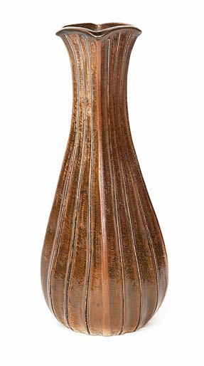 A large Martin Brothers stoneware gourd vase by Edwin & Walter Martin, dated 1908, shouldered, ribbed form, covered in a rich speckled chestnut brown glaze, incised 1-1908 Martin Bros, London & Southall, 25.5cm. high