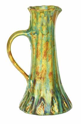 A Martin Brothers stoneware ewer by Edwin & Walter Martin, shouldered square section with handle, covered in a mottled tan glaze, incised Martin Bros, London & Southall, 25cm. high
