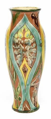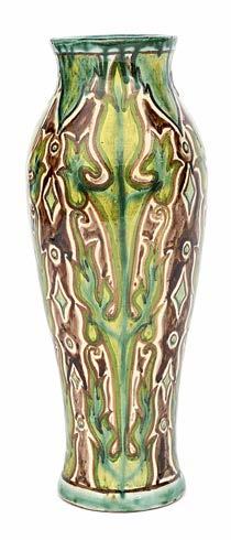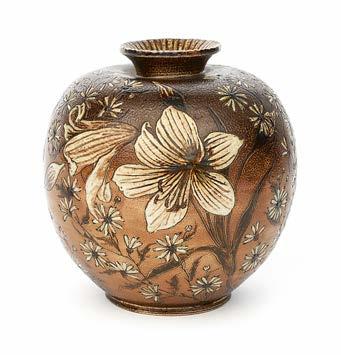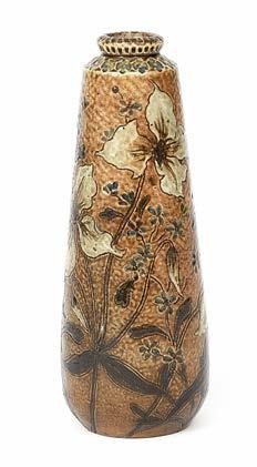 A Martin Brothers stoneware vase by Edwin & Walter Martin, dated 1892, shouldered, baluster form, incised with scrolling foliage in chestnut on a tan ground, incised 4-1892