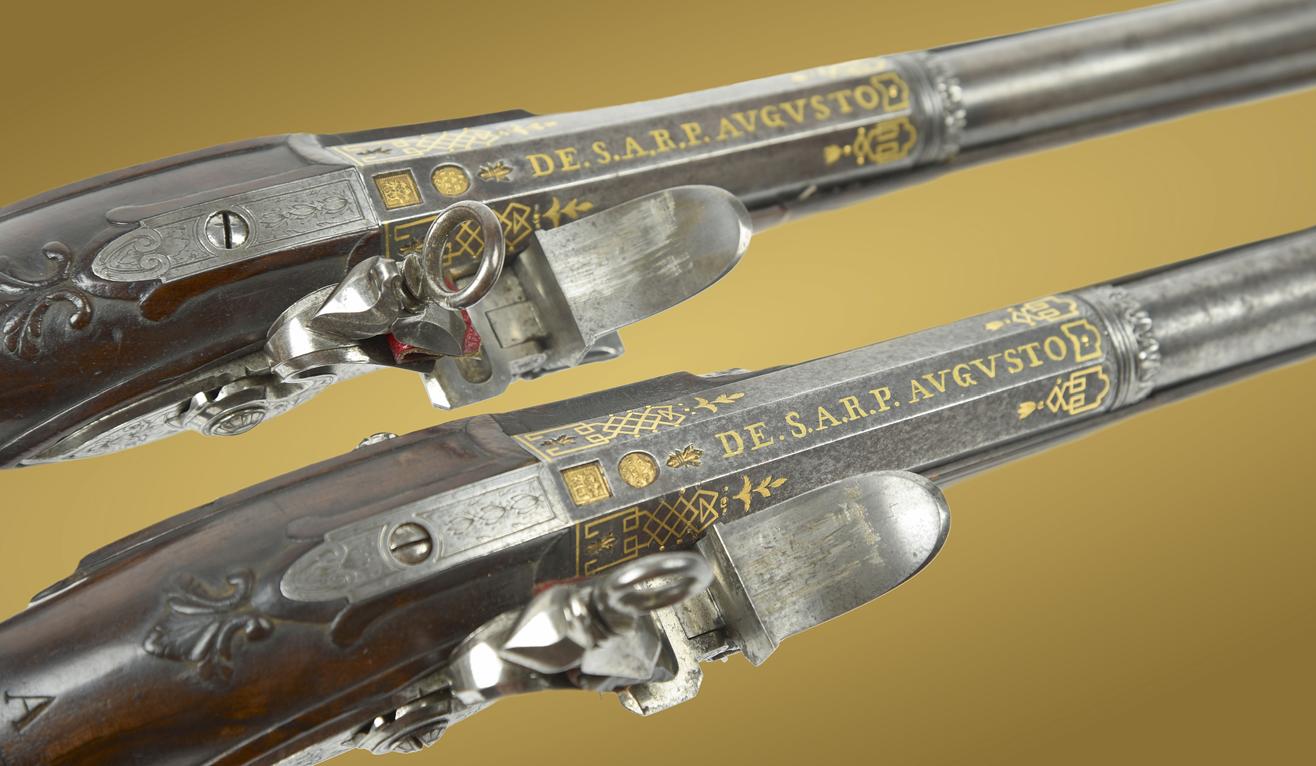 Francisco Targarona of Madrid: a fine and rare cased pair of Spanish 22 bore convertible ‘Madrid’ lock pistols from the personal collection of Prince Augustus Frederick 1st Duke of Sussex (17731843)