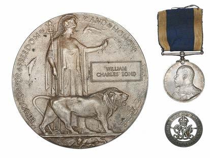 William Charles Bond was born in Portsmouth on the 7th of September 1896 and he joined the Royal Navy in November 1914. In 1916 he was serving as Third Class Writer in H.M.S. Alcantara, an armed merchant cruiser employed in the naval blockade of Germany. On the 28th of February, Admiral Jellicoe was made aware that a German commerce raider had entered the North Sea accompanied by a UBoat and he deployed vessels to intercept her. In the previous month Britain had lost the battleship H.M.S. King Edward VII to mines laid by a similar enemy ship, S.M.S. Möwe, which had gone on to sink several allied merchant vessels, and preventing the new threat S.M.S. Greif from escaping into open seas was of great importance. On the 29th of February the Alcantara encountered Greif, disguised as a Norwegian merchantman, northeast of the Shetland Islands, and made preparations for boarding her. A surprise attack from Grief initiated a ferocious gun battle in which both ships were sunk. The battered Alcantara developed a heavy list prior to sinking and William Bond observed a badly wounded marine on the lee side. In spite of having a hernia he slid down the deck to assist and, being unable to drag the man up the sloping deck to the raised side, he helped him off the lower side before following him into the frigid water to take care of him. Leaving a capsizing and sinking ship in this manner is extremely dangerous and Bond's courageous and selfless act was observed by the Alacantara's commander Captain Thomas Wardle, who recommended him for the D.C.M. Bond had already performed a valuable service of another kind by securing the ship's ledger in its special watertight container and for some time afterwards he was uncertain which deed had resulted in the award.