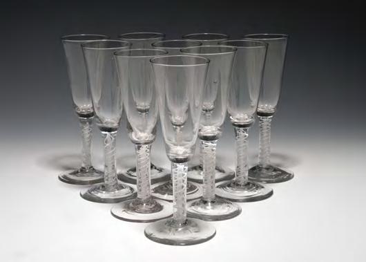 42 Ten various English and French ale or cider glasses, late 18th/19th century, including a tall deceptive, four dwarf ales with wrythen moulding, three goblets and two taller ale flutes, 19.3cm max. (10) £150250