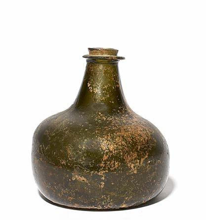 34 A deceptive baluster dram glass, c.171020, with a thickwalled funnel bowl rising from a teared knop over a short plain stem, all on a folded conical foot, 12.5cm.