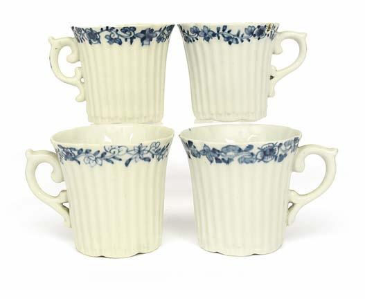 10 A set of four small wine glasses, c.1760, the ogee bowls moulded with vertical ribs, raised on multiseries opaque twist stems and conical feet, 15.3cm. (4) £150250