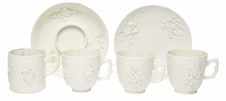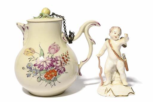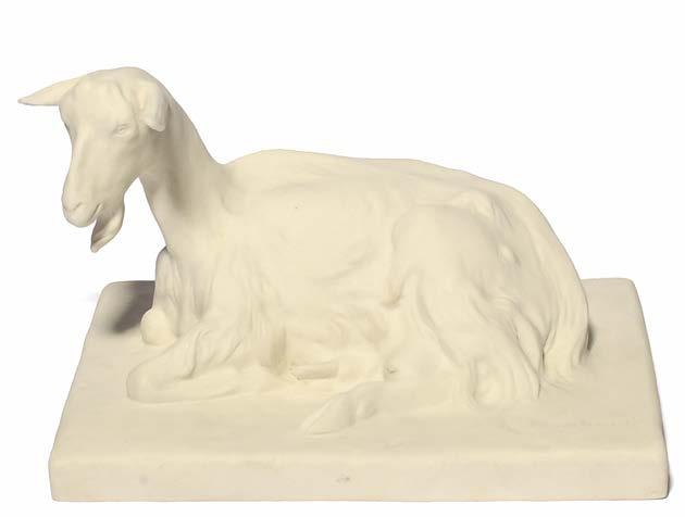549 A Plymouth figure group, c.1770, modelled with two putti and a goat before flowering bocage, raised on a tall scrolled base with puce and turquoise detailing, restoration to the bocage and the goat’s horns, 19.5cm.