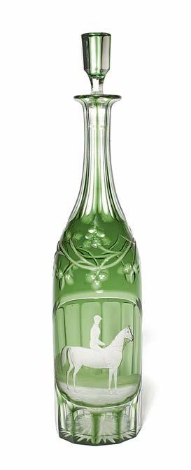 8 A pair of small commemorative drinking glasses of horse racing interest, 19th century, the round funnel bowls engraved ‘Success to Silver, Dale’ beneath a narrow foliate band, the base of each bowl cut with lappets, raised on low plain stems, 10cm. (2) £100150