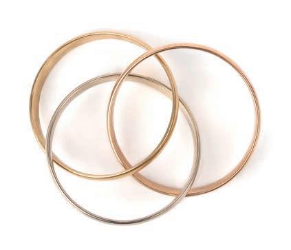 1022 Three enamel and gilt metal bracelets, mid 19th century, comprising: a pair of bracelets and one additional bracelet of similar design, each centring on an enamelled panel within a tapering bracelet of foliate openwork design in gilt metal, largest width 5.1cm, lengths adjustable £200300