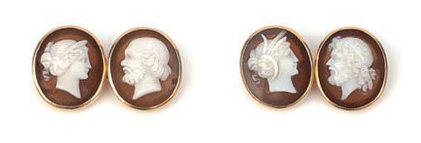 1039 A group of four carnelian intaglio brooches, the brooches each set with a modern intaglio depicting one of the labours of Hercules: slaying the Learnaean Hydra, capturing the Ceryneian hind, capturing the Cretan bull, and stealing the mares of Diomedes, after neoclassical originals from the collection of Prince Stanislas Poniatowski, each mounted in gilt metal, one applied with black enamel, largest brooch 5.5 x 5.0cm £200300