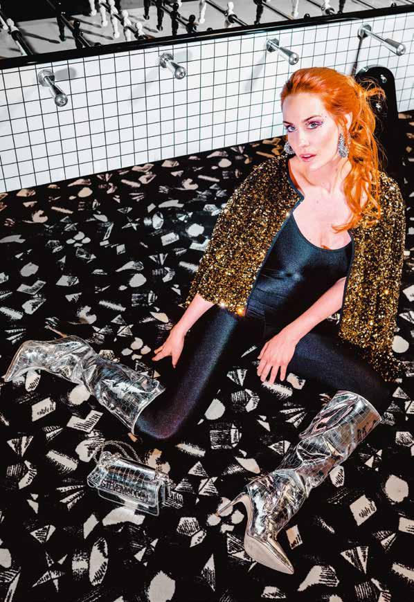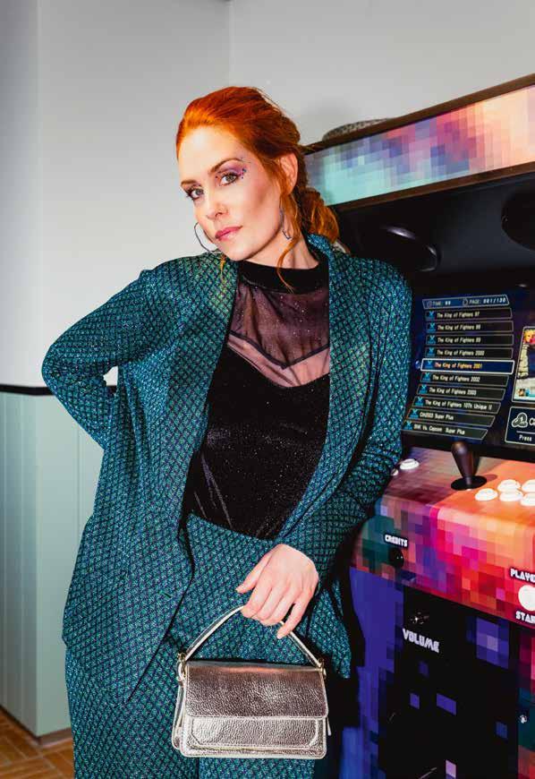 Numéro 80 oblige et sous couvert d’une envie de paillettes pour sa cou verture et son shooting mode, Janette vous embarque dans sa nostalgie des années… 80 ! Ce sont les années de mon enfance. Elles ont l’odeur d’une poupée qui sentait le citron offerte par le secrétariat de mairie de ma grand-mère, d’une bombe aérosol odeur sapin car le nôtre, artificiel, ne sentait rien. Oui, parce qu’à l’époque, le plastique, c’était fantastique ! Et les couleurs tout aussi authentiques tendaient vers le bleu néon ou le rose fuchsia, avec l’argenté et le doré qui s’en mêlaient sous forme de guir landes aux franges métalliques. À côté de la crèche trônait une bonbonnière Kinder vide, en forme de bonhomme de neige à l’écharpe multicolore que j’affectionnais particulièrement et ressortais d’année en année. Mon expression artistique et ma joie pou vaient même déborder sur les fenêtres où la neige en poudre pulvérisée sur des pochoirs prenait la forme du Père