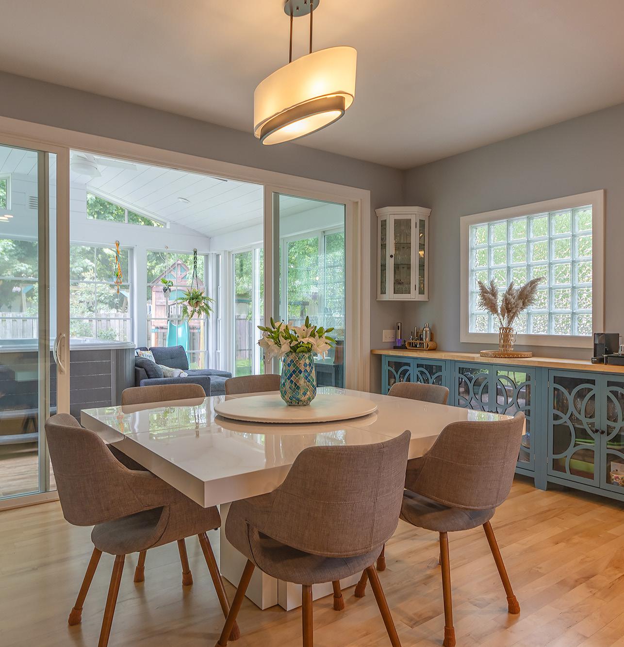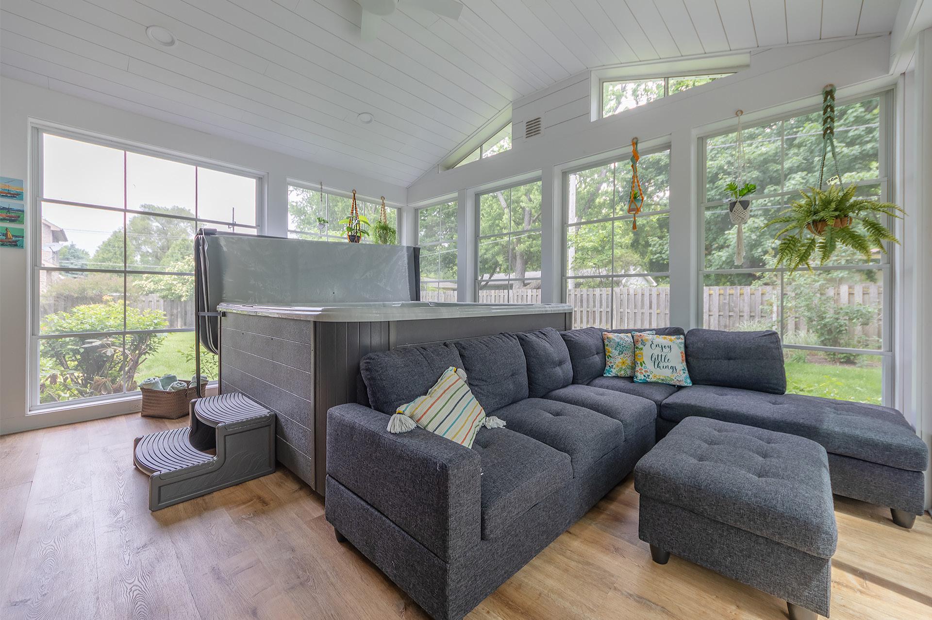 Welcome to Fox Crossing! Nestled in the highly sought-after Lakeshore Schools, this stunning Greg Fenner built Home offers unparalleled luxury and comfort. With five bedrooms and three and a half baths, this spacious residence is perfect for families of all sizes. The open kitchen, featuring JennAir appliances, stone countertops, and beautiful wood floors, is a chef’s paradise. Enjoy the convenience of a main floor primary suite, complete with a luxurious ensuite bathroom. The finished basement boasts a wet bar, bedroom, full bath, and a family room. A spacious three car garage offers ample room for vehicles and storage. Relax in the three-season porch with a jacuzzi or lounge in the shade on the expanded patio. Experience the perfect blend of quality construction, modern amenities, and a prime location.