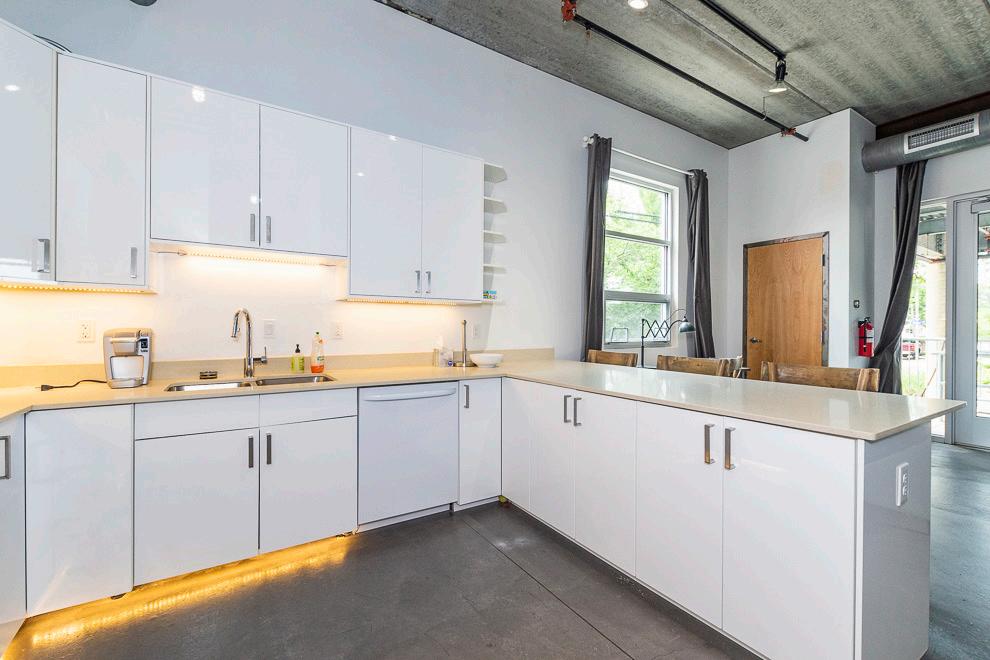 The office suite is the definition of “cool” with an industrial feel designed for Tenant’s seeking a collaborative work environment yet, offering great options to a hybrid workforce. The office space consists of an open floorplan encompassing three floors centered around the open stairwell, which provides: