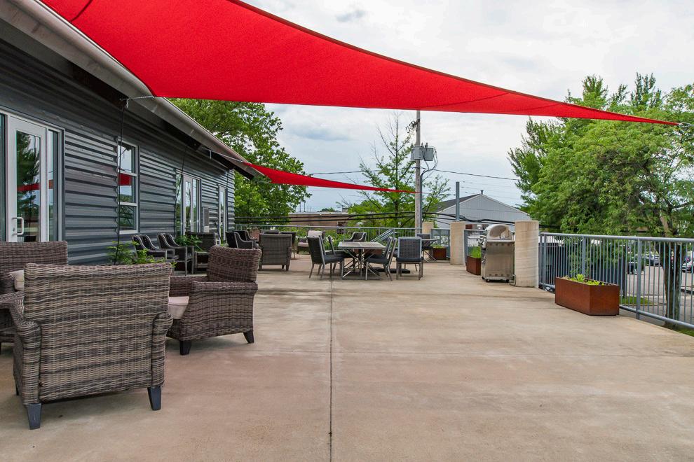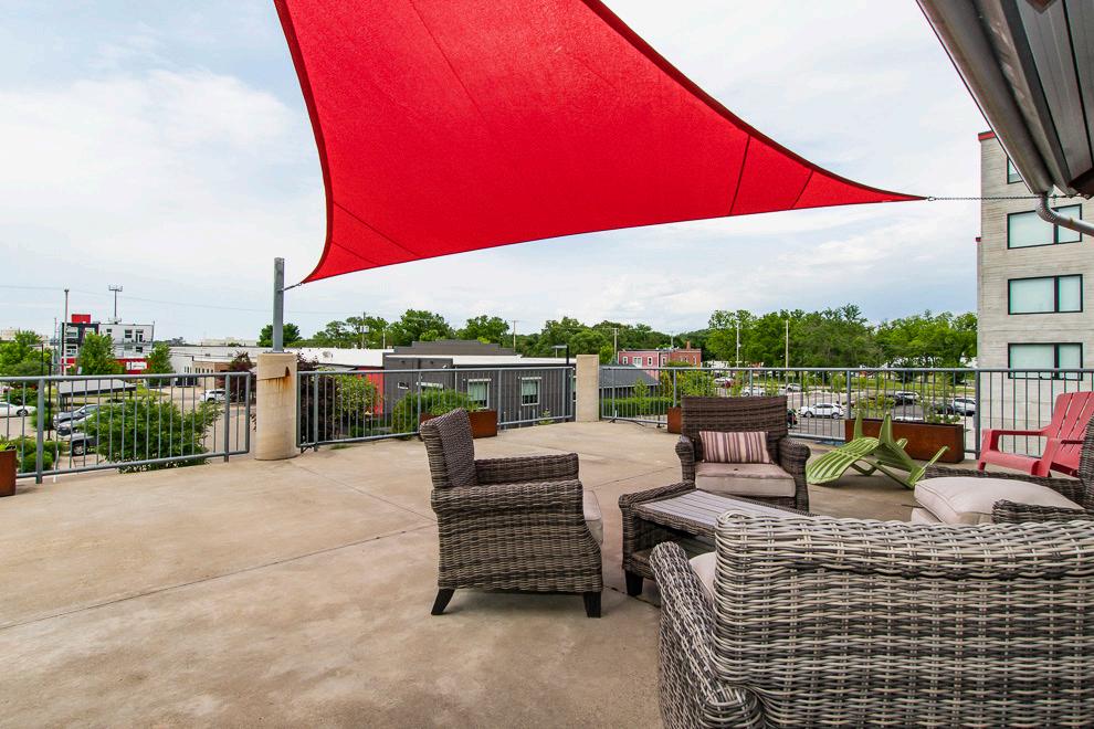 • An outdoor deck overlooking the River’s Edge District.