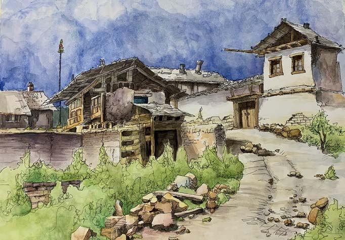 The perspective seeks to display the various socio-architectural typologies that join together within the District - a school, urban residences, preserved sites, and commercial stores and restaurants. The drawing illustrates the various dichotomies of past vs present, culture vs consumption, residential vs commercial, local vs franchises. These juxtapositions are produced as a result of the architecture, site function and occupation by visitors, vendors etc.