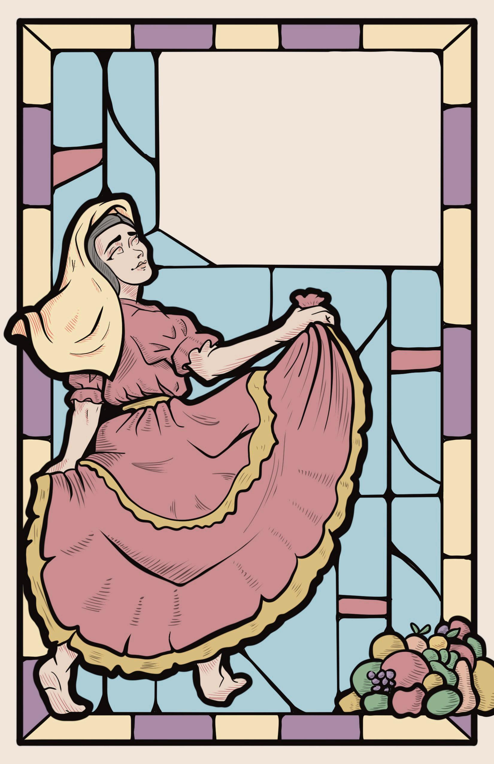 Estilo artistico inspirado en los vitrales de la iglesia de Santa Lucía de Juayúa.