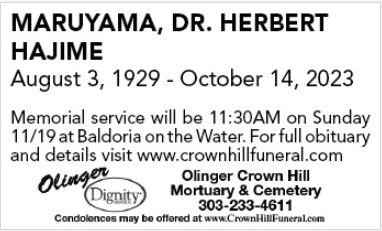 Digital only obituaries will not appear in the printed edition of The Denver Post or our digital replica edition. They will be posted on our Endless Tributes website and on Facebook.