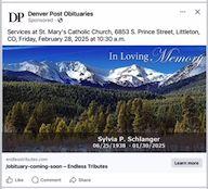 The Denver Post publishes ads in the printed edition and on our Endless Tributes website encouraging people to consider their obituary and including it in their preplanning.