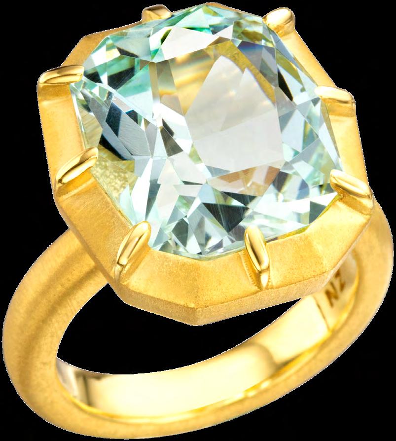 5. Griffen ring with 9.82 ct. modified cushion aquamarine in 18k yellow gold; $9,665; laurenk.com