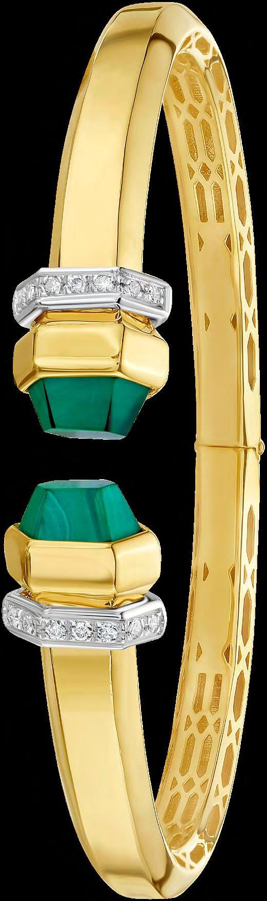 Jade bangle bracelet in 18k yellow gold with diamonds; $6,500; octaviaelizabeth.com