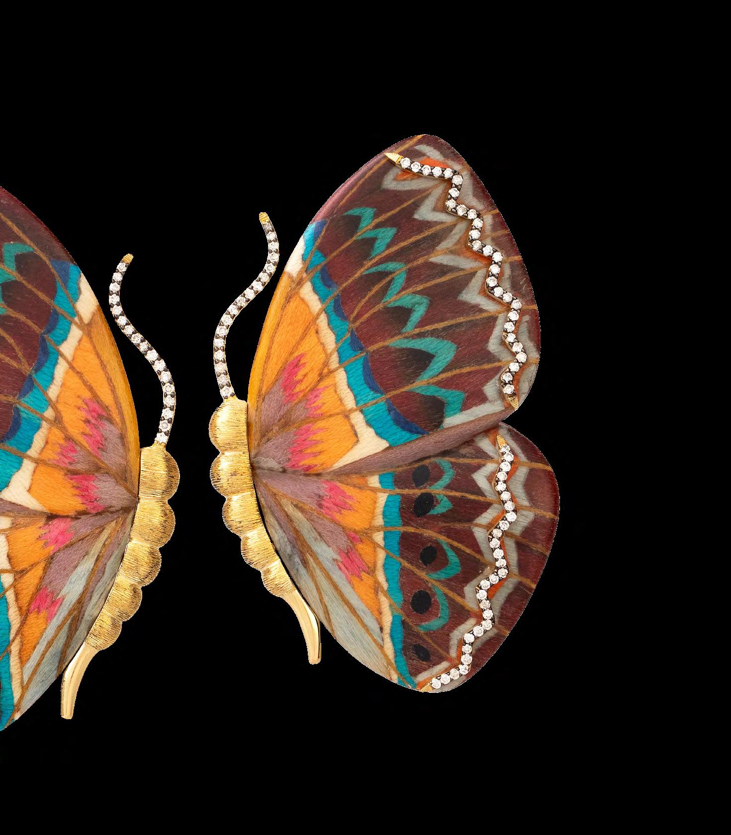 6. Kashmir butterfly earrings in wood marquetry with 18k gold and diamonds; price on request; silviafurmanovich.com