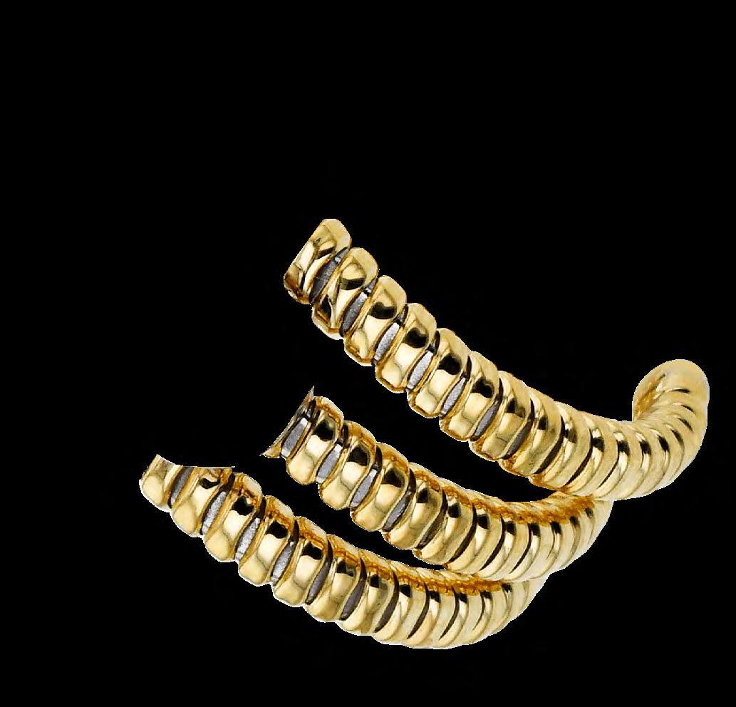 Double-Headed Serpent ring with 2.11 cts. t.w. lab-grown diamonds in 14k yellow gold; $4,400; darakayejewelry.com