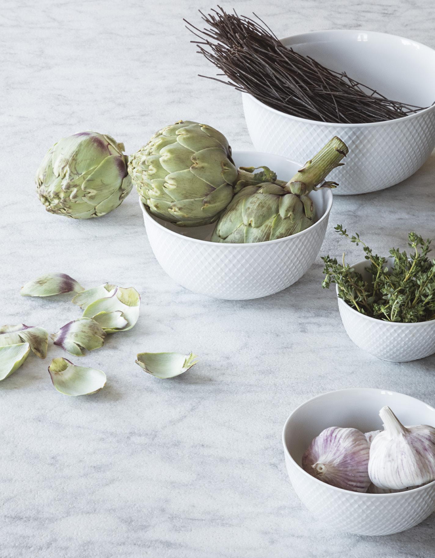 Rhombe-serien er et klassisk stel med en nyfortolkning af et velkendt mønster. Mønsteret stammer fra Lyngby Porcelæns arkiver, og denne nyfortolkning giver mønstret elegance og raffinement til skålene.